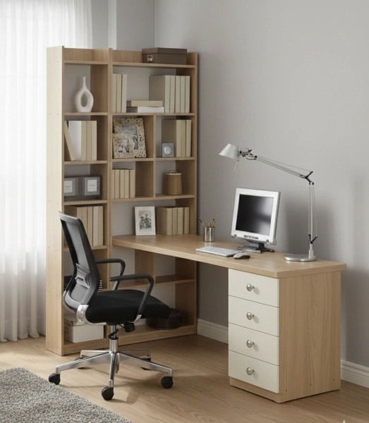 כולל סיפריה פתוחה מעל ומתחת למשטח השולחן ,