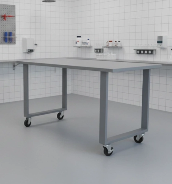 שולחן עבודה עם רגל מתכת וגלגלים , פלטה מלמין יצוק עובי 28 מ"מ בגוונים רבים פרופיל 6/3 ס"מ, גוון רגל כסוף/לבן/שחור/גרפיט,