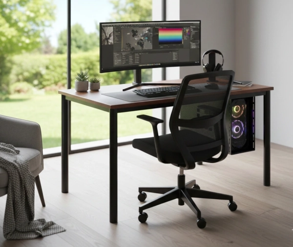 שולחן למחשב עם פלטה גימור מלמין עובי 28 מ"מ, פינות ישרות,