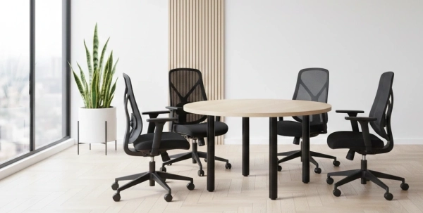 שולחן פלטה מלמין עובי 28 מ"מ רגל מתכת דגם אבנר ,רגל פרופיל עגול קוטר 48 מ"מ עם חיזוק מתחת לפלטה