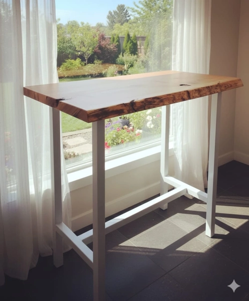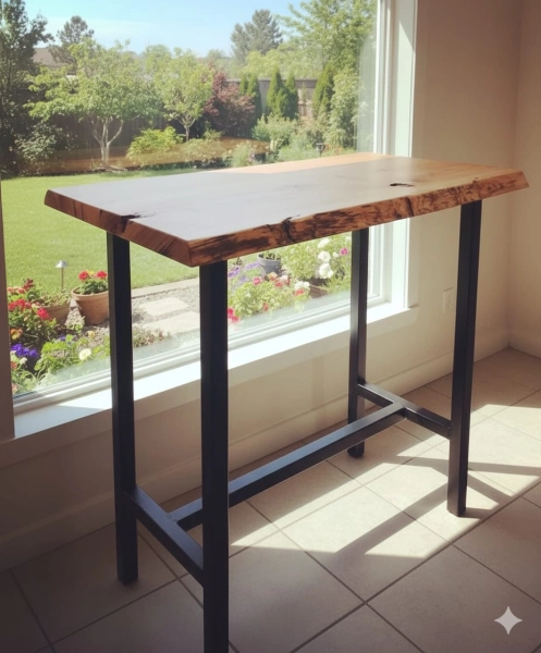 שולחן אוכל/שולחן בר, שילוב עץ מלא עובי 40 מ"מ עם רגל ברזל פרופיל 4/4 מידות רבות לבחירה ,