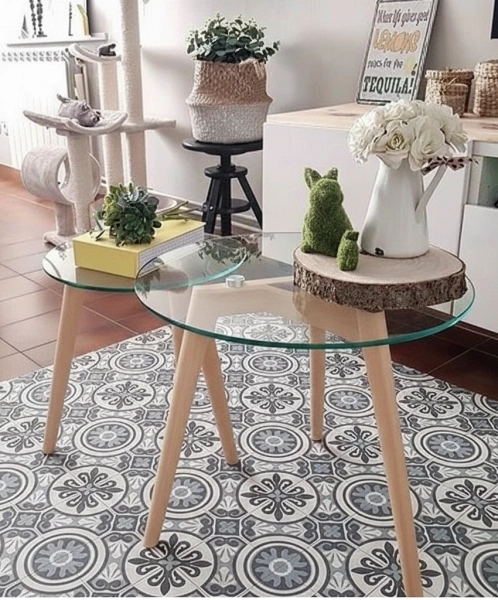 3 רגלי עץ גוון טבעי , זכוכית מחוסמת מחיר מיוחד לסט (מתאים אחד ליד השני)