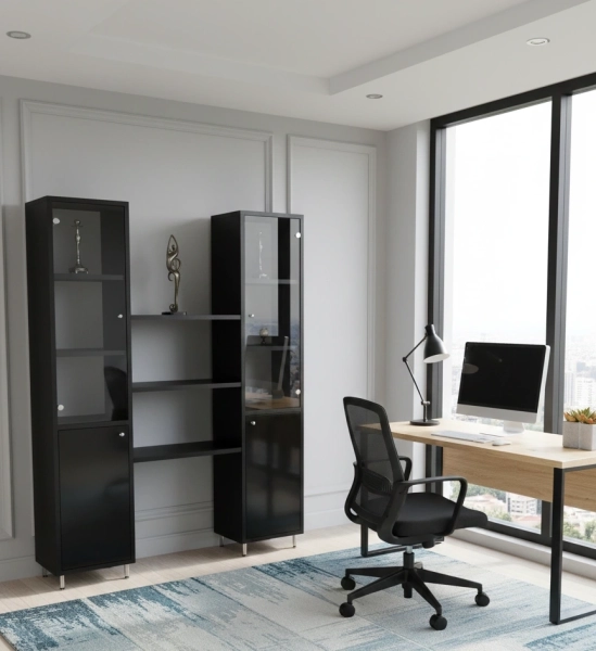 ארון ויטרינה בשילוב דלתות עץ+זכוכית, גימור מלמין עובי 28 מ"מ,