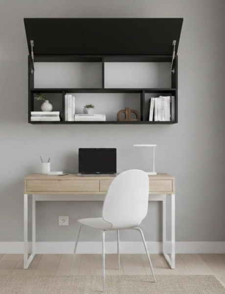 כוורת קלפה בתליה - ייצור בהתאמה אישית מידה: אורך 120 /עומק 30 /גובה 63 , קלפה + 3 תאים פתוחים גימור מלמין גווני סטנדרט , גב מזונית לבן לחיזוק ! ידית 9.6 ניקל / שחור / לבן / ללא ידית - דלת בולטת מלמטה לפתיחה