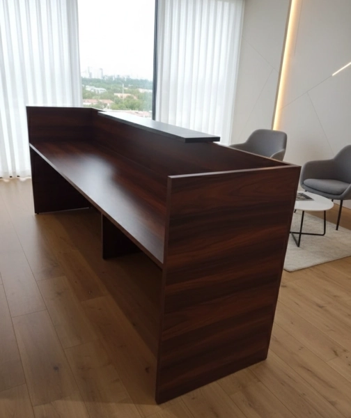 ייצור דלפקים בהתאמה אישית. דלפק קבלה בגימור מלמין יצוק עובי 28 מ"מ, מידות רבות לבחירה גובה כללי 110,