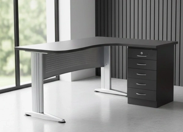 כולל רגל מתכת דגם אלפא בגוון אפור וארגז עם 4 או 5 מגירות קבועות