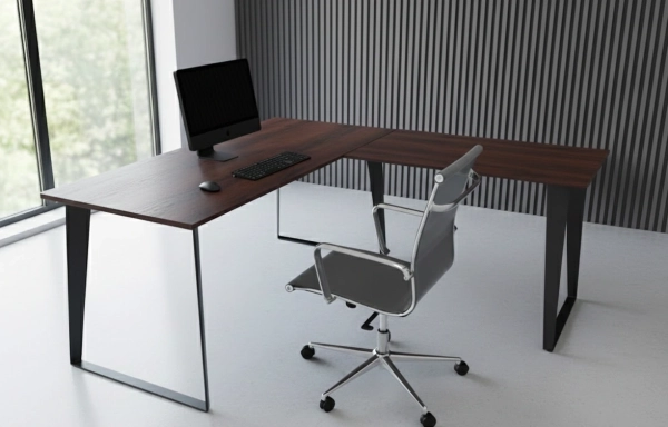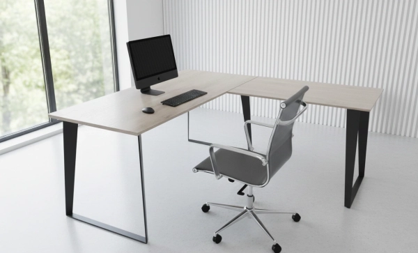 שולחן עבודה פינתי עם רגל מתכת מעוצבת דגם טווס,במבחר מידות, פלטה גימור מלמין עובי 28 מ"מ,לא כולל סינר ,
