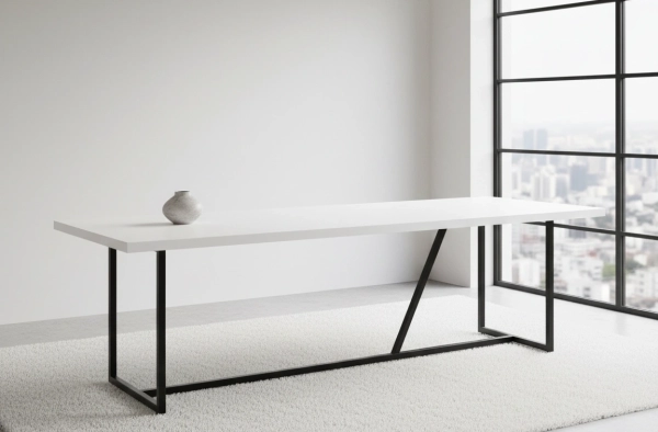שולחן מלבני לחדר ישיבות/חדר עבודה, רגל מתכת בגוון שחור/לבן/אפור בהיר , ברזל צבוע ,