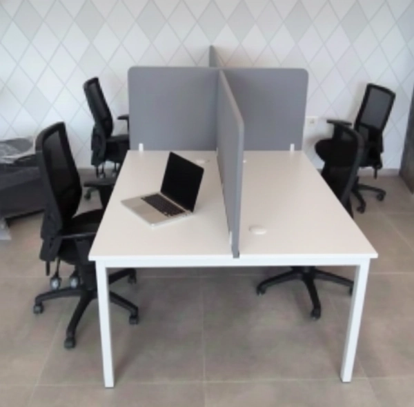 עמדת עבודה הכוללת שולחן עם רגל מתכת פרופיל 4/4 ס"מ