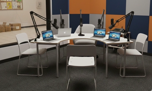 שולחן לפודקאסט/שולחן עבודה סהר/שולחן עבודה חצי עיגול סהר 21