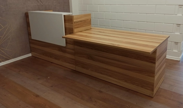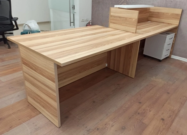 דלפק מזכירה בקווים נקיים וישרים, שילוב גוונים לבחירתכם, לפי המידה שמתאימה לכם.