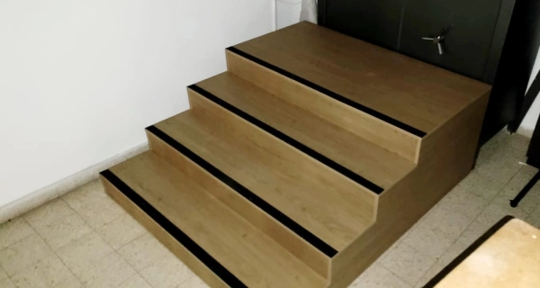 ייצור במה ומדרגות גישה לבמה בגימור סנדויץ עם פורמיקה