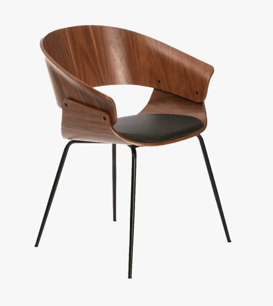 ריפוד דמוי עור שחור, גב עץ אגוז