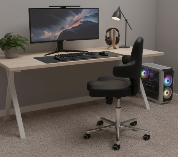 מושב ארגונומי ואנטומי מיציקת ספוג נוחה בריפוד דמוי עור שחור