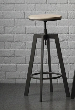 כסא בר מסתובב, מושב ורגליים עץ צבע בהיר,