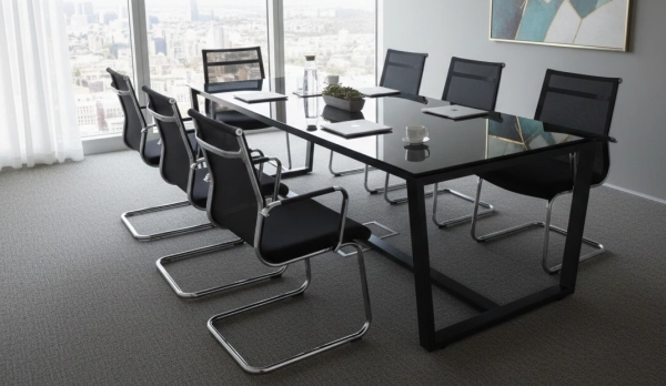 שולחן מלבני , משטח עבודה זכוכית 10 מ"מ מחוסמת, רגלי מסגרת ברזל צבוע בגוון אפור בהיר/שחור//לבן /גרפיט