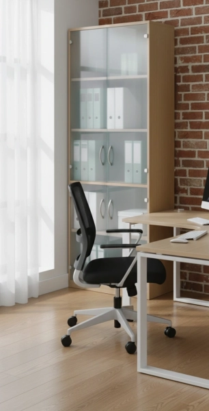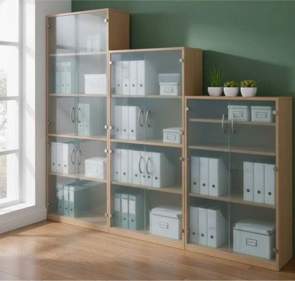 ייצור ארונות/ויטרינות בשילוב דלתות זכוכית שקופה/חלבית/לבנה,